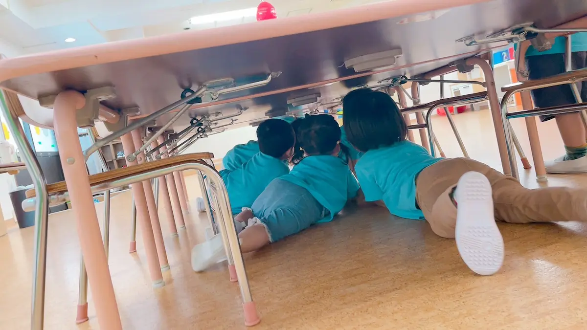 9月1日の防災の日 2024年9月11日 お知らせ 9月1日の防災の日。アンファンでも、怖くないように遊びの中で避難訓練ごっこをしました。ピアノに合わせて行進しながら「隠れて!」と言われたら机の下に隠れたり、ヘルメットを被って電車ごっご。「消防車の人みたい!」と喜んでいた子達もいました。 URL Copied!